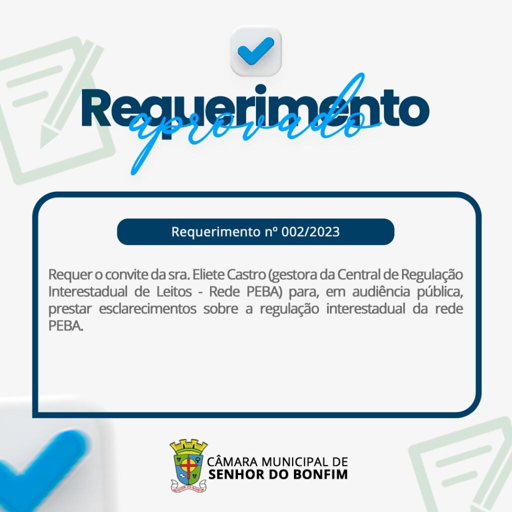 Câmara Municipal de Senhor do Bonfim Aprova Requerimento para Audiência Pública com Gestora da Central de Regulação Interestadual de Leitos